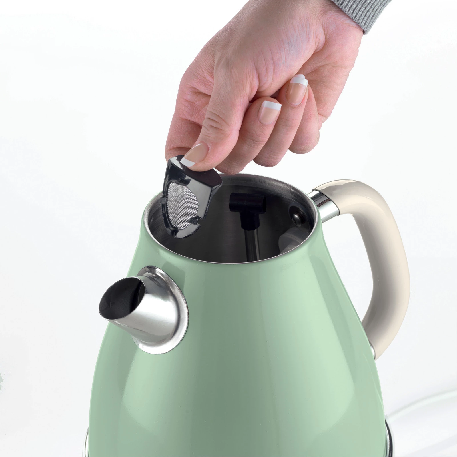 - Moc [W]: 2000 | Pojemność [l]: 1,7 | Ukryty element grzejny: tak | Kolor: zielony| Filtr: tak | Obrotowa podstawa: tak 360°