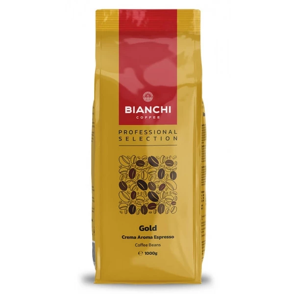 - Bianchi GOLD to intensywna mieszanka 80% robusty z Indii i 20% arabiki z Kolumbii. Gęsta crema, wysoka zawartość kofeiny i nuty czekolady, orzechów, karmelu i brązowego cukru tworzą bogaty, pobudzający profil smakowy.