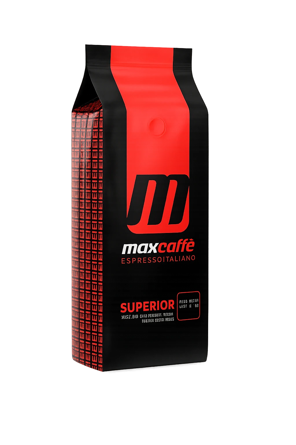 Max Caffe' Superior to najlepsza jakość kawy wyselekcjonowanej z najlepszych plantacji w Brazylii, Ameryce Środkowej i Indiach, fachowo palonej i mieszanej, tworzącej mieszankę bogatą w śmietankę, która w wyjątkowy sposób łączy w sobie przyjemne właściwości i mocny smak.