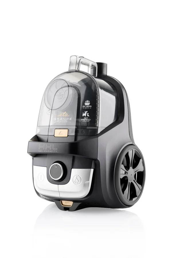 ETA Grande Animal został wyposażony w praktyczny uchwyt, ułatwiający przenoszenie i automatycznie zwijany kabel zasilający. Miękkie koła nie uszkadzają delikatnych podłóg, dzięki czemu możesz sprzątać bez obaw o ich zarysowanie.
