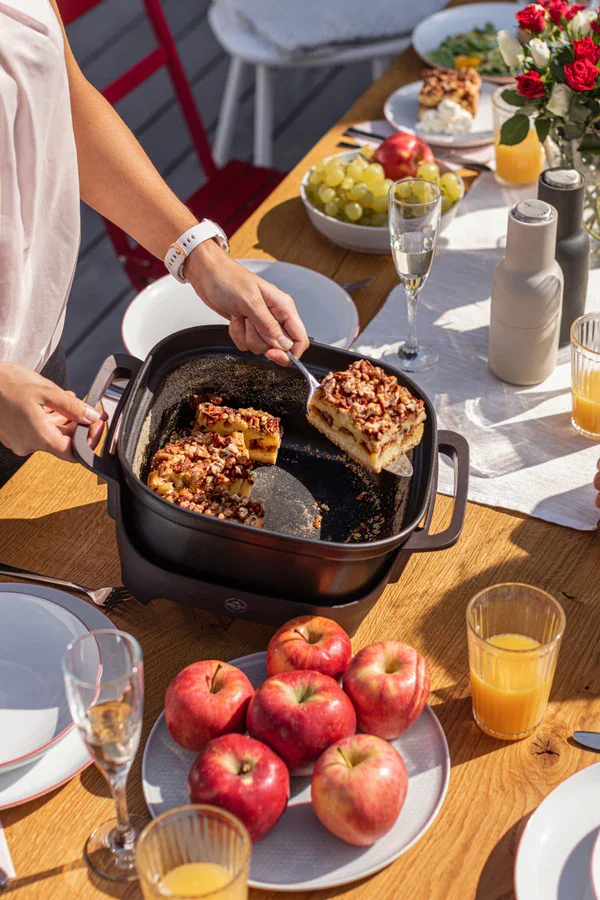 • Nadaje się zarówno do smażenia i grillowania (np. mięsa, ryb), ale także do pieczenia (np. ciast) i duszenia (np. warzyw)