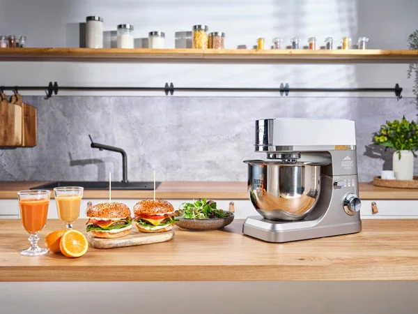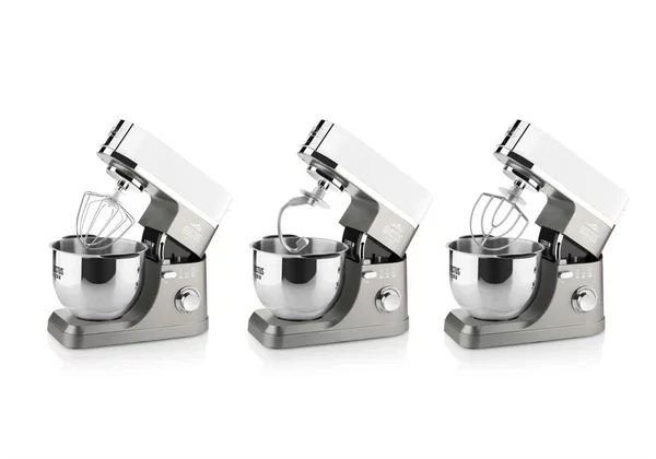 - Moc [W]: 1200 | Pojemność misy [l]: 2 x 5,5 | 3 mieszadła | maszynka do mięsa, szatkownica, blender kielichowy | Kolor: szary i biały