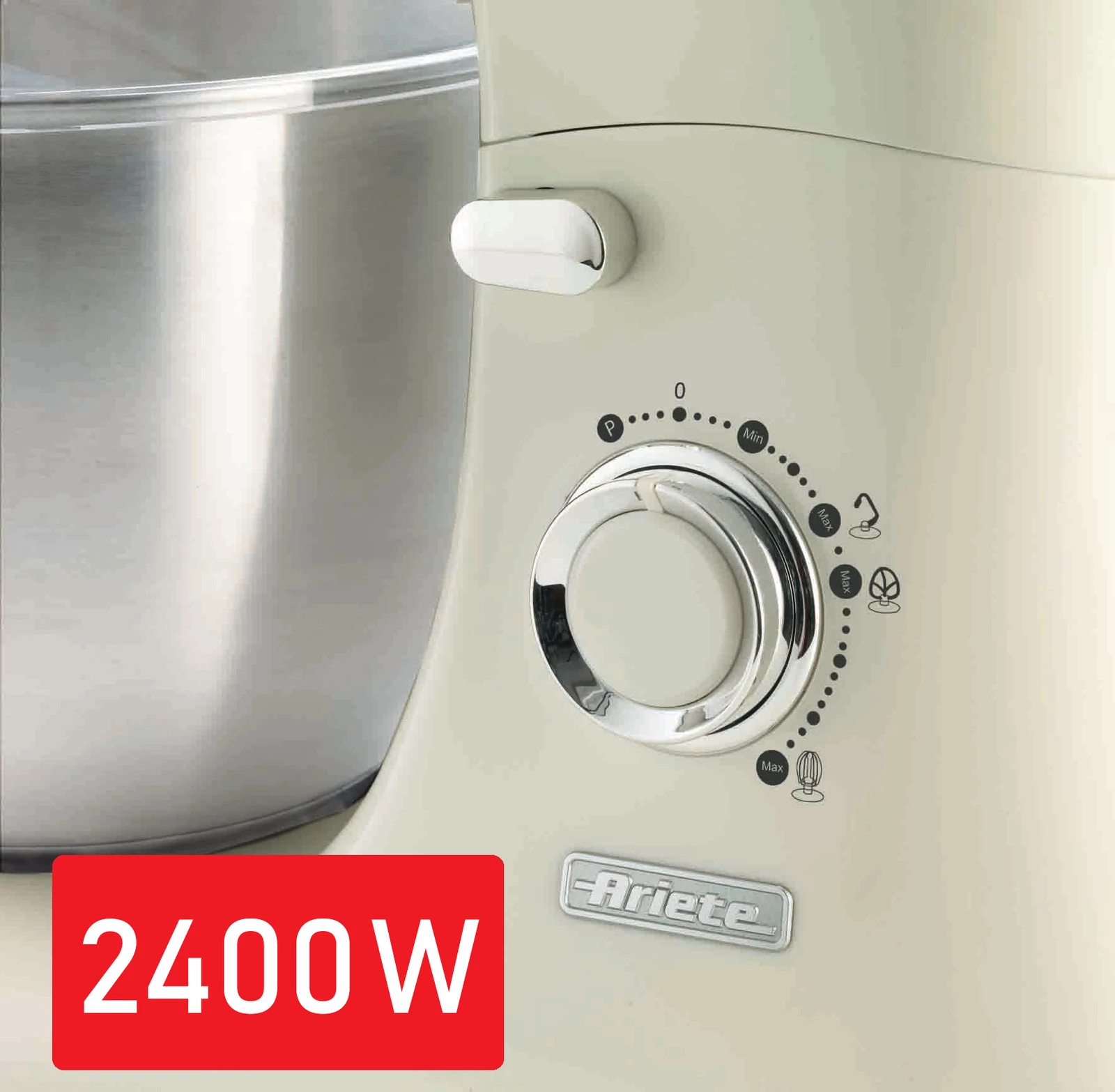 Robot planetarny w stylu Vintage marki Ariete to doskonały wybór dla osób, które szukają praktycznego i estetycznego rozwiązania dla swojego domu. Urządzenie posiada silnik o wysokiej mocy maksymalnej wynoszącej 2400 W, regulacje prędkości w zakresie od 30 do 172 obrotów na minutę, funkcję pracy pulsacyjnej, system powolnego startu, metalową misę o pojemności 5,5 l oraz końcówki do mieszania, ubijania i zagniatania.